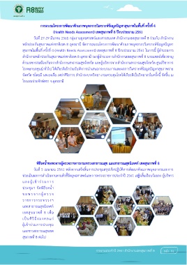 สุขภาพในพื้นที่ ครั้งที่ 4 (Health Needs Assessment) เขตสุขภาพที่ 8 ปีงบประมาณ 2561 ในการนี้ ผู้อ านวยการ